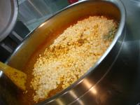 トマト缶と調味料でミートソースを作ります。そこへゆでた豆腐とマカロニを入れ具を作ります。