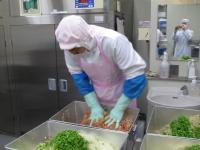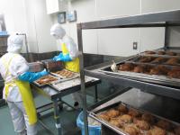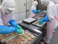ヤーコン入り焼きメンチは、給食センター手作りです。ヤーコンは野々市市でとれたものを使っています。