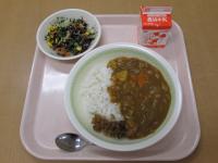 栄養満点の「横須賀海軍カレー風、ひじきサラダ、牛乳」