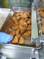 カラッと揚げていきます。 おいしそうなきつね色に仕上がりました。