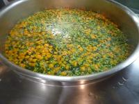 お月見汁には、月に見立てた、白玉粉とかぼちゃを混ぜて作った団子が入っています。