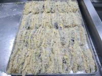旬のトビウオ 小麦粉、卵、パン粉をつけます パン粉までつきました
