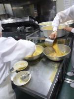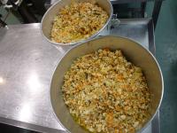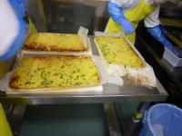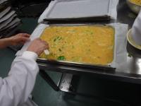 お肉や野菜が偏らないように、均一に混ぜ合わせ、焼きあがったものを切って配食しました。