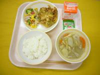 今日は「かきあげ」です。旬の「さつまいも」がたっぷり入っています。給食センターで手作りしています。野菜をカットして、小麦粉をまぶし、小麦粉と水で作った天ぷら衣をつけて油で揚げます。同じ形にはなりませんが、それぞれが手作り感があり、さつまいもがホクホクしていました。