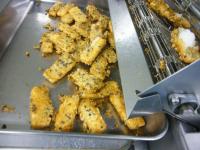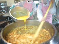 四方はべん なので、長方形 仙台麩 卵を今日は1400個 今日の給食四角いけど1/3に 衣に米粉を入れて (油麩) 割りました!