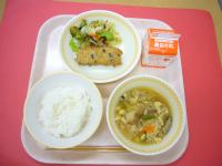 2021年10月18日 16時30分今日の給食は四方はべんの変わりあげと油麩の卵とじでした。四方はべんは市販品は半面に黄色の色がつけてありますが、給食で使用している物は給食用で色を付けずに作ってもらっています。「はべん」は金沢の言葉で「かまぼこ」のことを指しています。生徒にはなじみがあまりないようで、「はんぺん」だと思っていた子もいました。