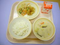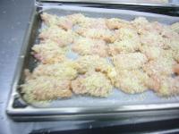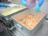 下味をつけた鶏肉 ハーブ入りパン粉をまぶ こんがり焼きます 今日の給食