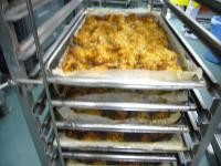 にんにく、パン粉を混ぜたものを鶏肉の表面につけてスチームコンベクションで焼きました。