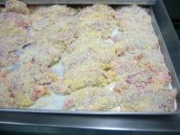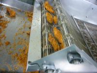 小麦粉・卵・パン粉の順で      フライヤーで揚げます         今日の給食