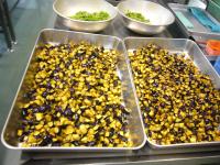 また、ヤーコンをシロップ漬けにした「ヤーコンコンポート」はフルーツカクテルにいれました。このコンポートも翠星高校の生徒さんが作って冷凍しておいてくれたものです。食感がシャリシャリして冷凍していたと思えないくらいのおいしさでした。