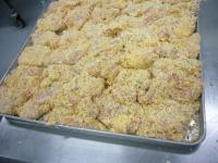 下味にもハーブ    パン粉にもハーブ    フライヤーで揚げます       今日の給食                                        添えのラタトゥイユもパスタにかけたいくらいおいしかったのですが、ちょっと大人の味だったかもしれません。