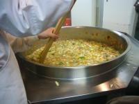 とり野菜みそです。 約400人分です。 野菜や豆腐がたっぷり!! 今日の給食