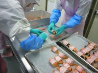 給食センターの調理員さんが1つ1つ巻いてくれました。焼き具合もとても良かったです。(自画自賛ですね)