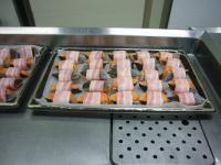 鮭をベーコンで巻きます。 焼く前 焼いた後 今日の給食