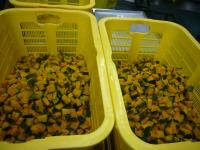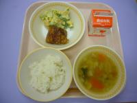 ホクホクしたかぼちゃです。 サラダはマヨネーズ味。玉ねぎの ねぎのスープ。ビタミンCのとれる 今日の給食