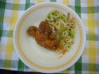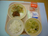 見た目はさつまいもですが ゆでてもシャキシャキ ヤーコン?もやし? ヤーコンのナムルと 今日の給食