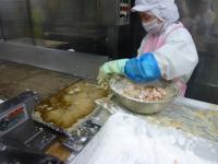 五目ずしの具です      ごはんを混ぜ込んでいきます   鶏肉を揚げていきます