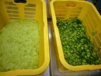 つやつやで新鮮でした。 きゅうりと比べてみました。ゆでて冷まして和えます。   今日の給食です。    ほっけの色づけです。