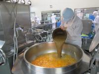 給食の鍋が焦げ付かないようにたまねぎとトマトを炒めたあとにカレールウをいれました。