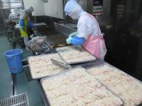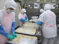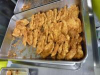 チャンピオンカレーのLカツのように、カツをつけました。カツは給食センターで手作りしました。