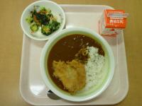 今日の給食は、『給食チャンピオンカレー、カツ、海藻サラダ、牛乳』です。