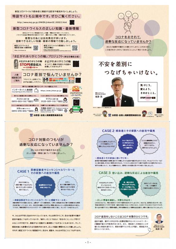 コロナをおそれて過剰な反応になっていませんか?(法務省リーフレットより)