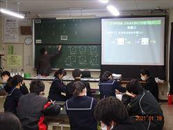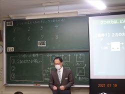 研究授業のようす 2021年1月20日 06時35分 1年数学と理科の研究授業を行いました。生徒たちは、数学「平面と直線の垂直」、理科「2力のつり合い」について真剣に考えて理解しようと頑張っていました。 いいね