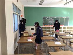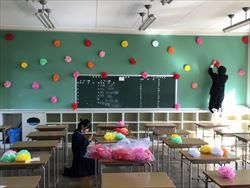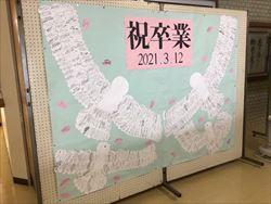 卒業式の準備 2021年3月12日 07時05分 卒業式の準備を、1,2年生と職員でおこないました。1,2年生は、会場設営、校内の掲示、3年教室の準備と一生懸命に行っていました。1、2年生の皆さん、ありがとう。<会場、掲示などの準備><2年教室の飾り付け> いいね