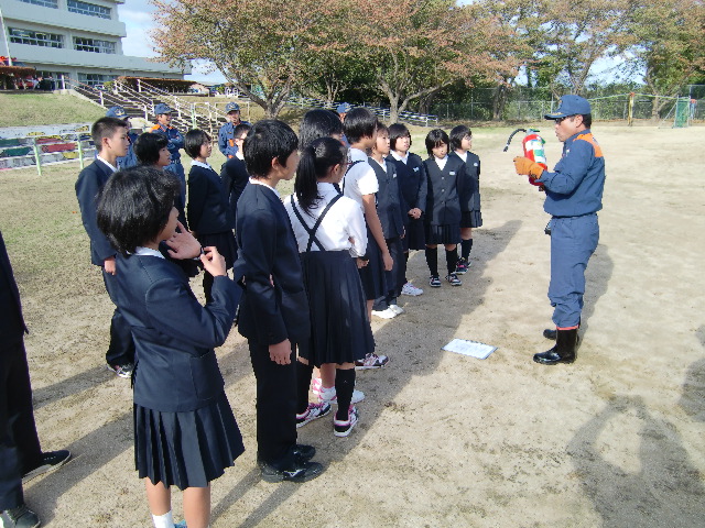習いました。これは,6年生が初期消火の訓練をしている様子で