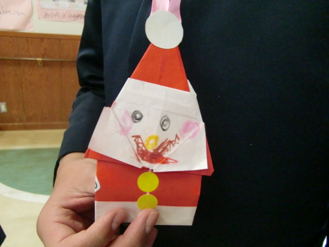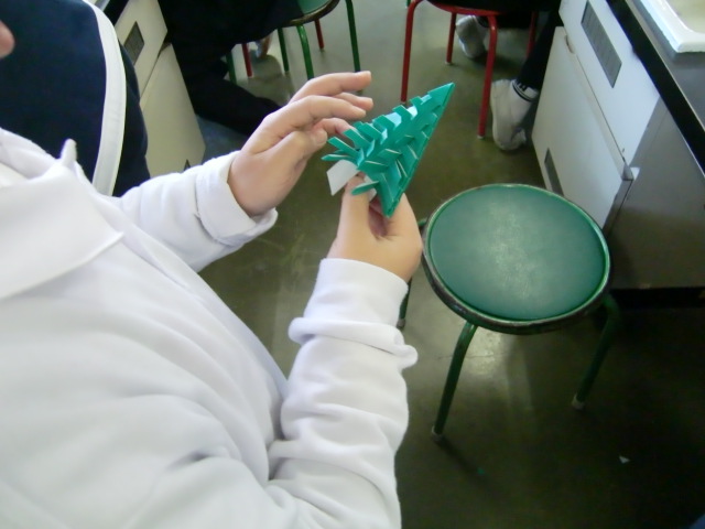 折り紙一枚が,こんなにすてきなツリーになるんですね。そうそ