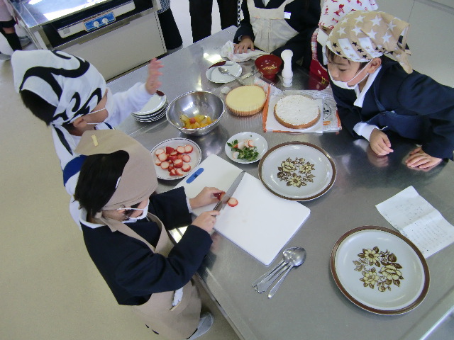 みんなで仲良くケーキづくりをしていました。包丁も使えるんで