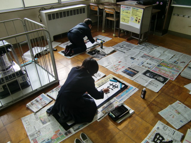 一生懸命。いい雰囲気が教室に漂っていました。黒板に貼って