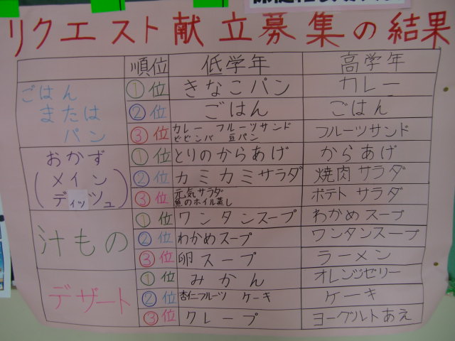 「リクエスト献立」の中間結果です。個人的に注目しているのは