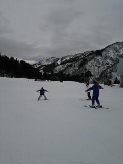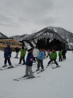 今日は、最初はリフトに乗らず、なだらかな斜面で基本の練習をみんなでしました。最後は、リフトに3本乗ったグループと、2本乗ったグループがありました。明日は、ゴンドラに乗る予定です。小木中の1年生と一緒に滑ります