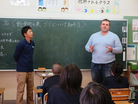 2016年11月30日 17時30分BS-TBS放送局さんの特別番組のため、元大相撲力士である把瑠都 凱斗(ばると かいと)さんが本校に来校されました。本校で行われている「里海科」の授業の様子を見に来られて、日の出大敷の中田さんも交えての特別な授業になりました。