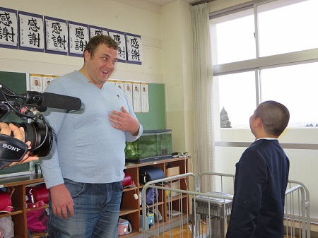 小木小学校では相撲をしている児童がおりますので、力士をされていた把瑠都さんの来校に興奮を隠しきれない様子でした。