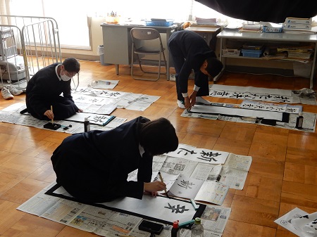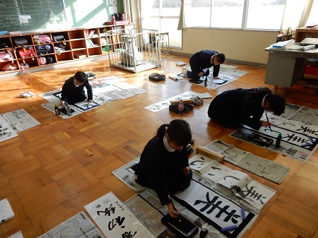 今日から三学期が始まりました。子どもたちは元気に登校し、早速校内の書初め大会も行われました。