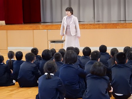 保健の小下先生からは「冬休み中、風邪やインフルエンザにならないよう注意しましょう」とのお話がありました。