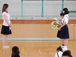 2015年7月15日 08時30分2年間、ALTとしてお世話になったオリビア先生の離任式がありました。