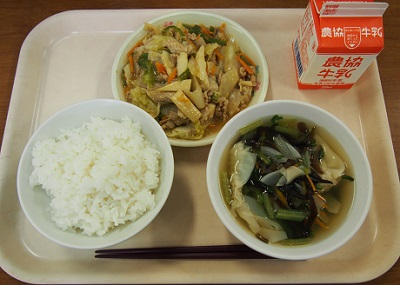 2016年9月26日 16時12分ごはん 牛乳 ホイコーロー ワンタンスープ
