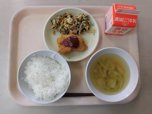 ごはん 牛乳 たっぷり野菜の天ぷら わかめサラダ みそ汁
