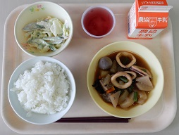 ごはん いかのいしる煮 ごぼうサラダ