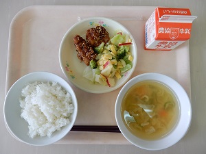 ごはん 若鶏のごまがらめ ブロッコリーとリンゴのサラダ