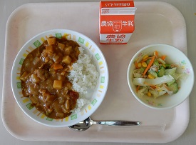 カレーライス シーチキンサラダ 牛乳