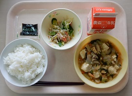ごはん 豆腐の中華煮 きゅうりの中華和え