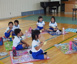 1年生に「そらまめくんのベッド」という本の読み聞かせをしました。