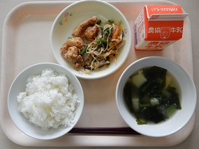 ごはん 鶏の竜田揚げ 切干大根の炒め煮