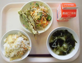 たけのこごはん ししゃもの新緑揚げ