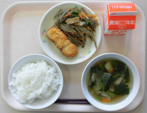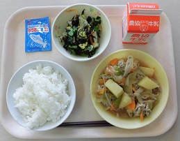 ごはん 肉じゃが 磯香あえ ふりかけ 牛乳
