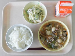 ごはん 八宝菜 マカロニサラダ 牛乳